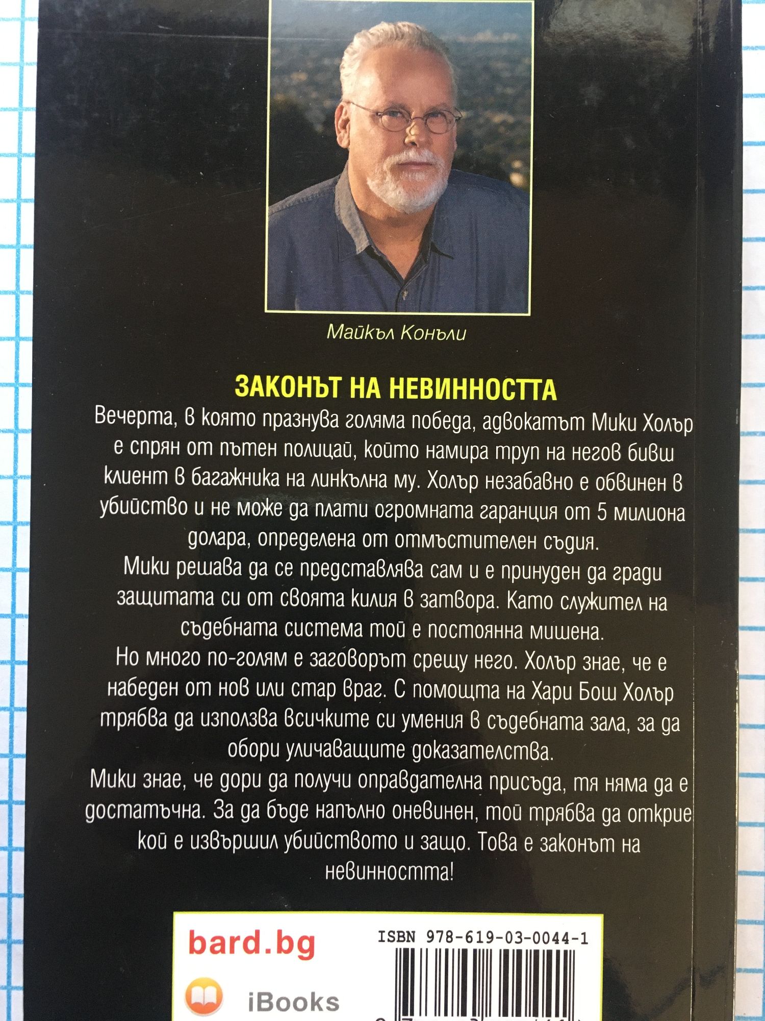 Вечерта, в която празнува голяма победа, адвокатът Мики Холър е спрян от пътен полицай, който намира труп на негов бивш клиент в багажника на линкълна му. Холър незабавно е обвинен в убийство и не може да плати огромната гаранция от 5 милиона долара, определена от отмъстителен съдия. Мики решава да се представлява сам и е принуден да гради защитата си от своята килия в затвора. Като служител на съдебната система той е постоянна мишена. Но много по-голям е заговорът срещу него. Холър знае, че е набеден от нов или стар враг. С помощта на Хари Бош Холър трябва да използва всичките си умения в съдебната зала, за да обори уличаващите доказателства. Мики знае, че дори да получи оправдателна присъда, тя няма да е достатъчна. За да бъде напълно оневинен, той трябва да открие кой е извършил убийството и защо. Това е законът на невинността!