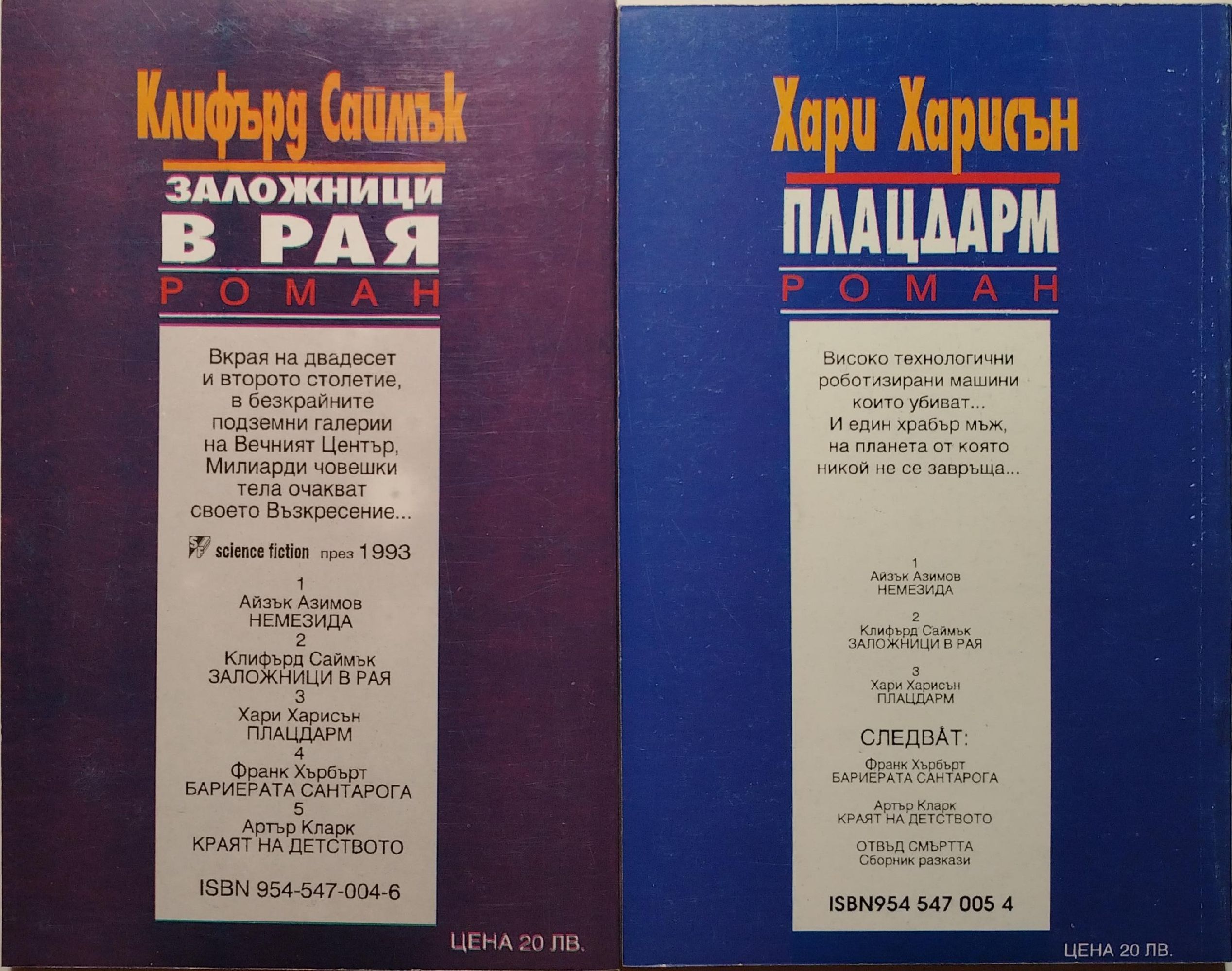 ISBN на "Заложници в рая": 9545470046 ISBN на "Плацдарм": 9545470054