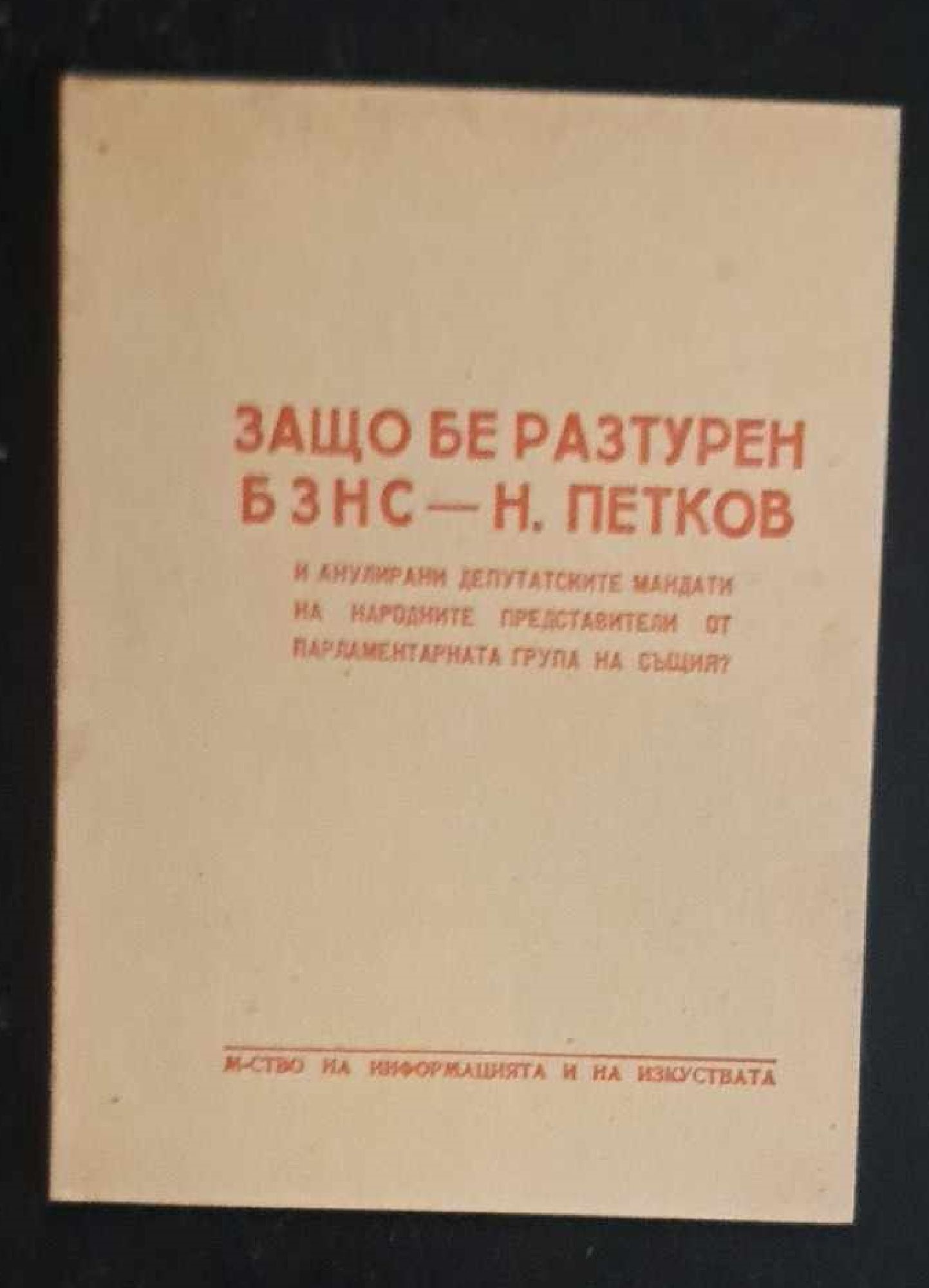 - издателство: Министерство на информацията на изкуствата