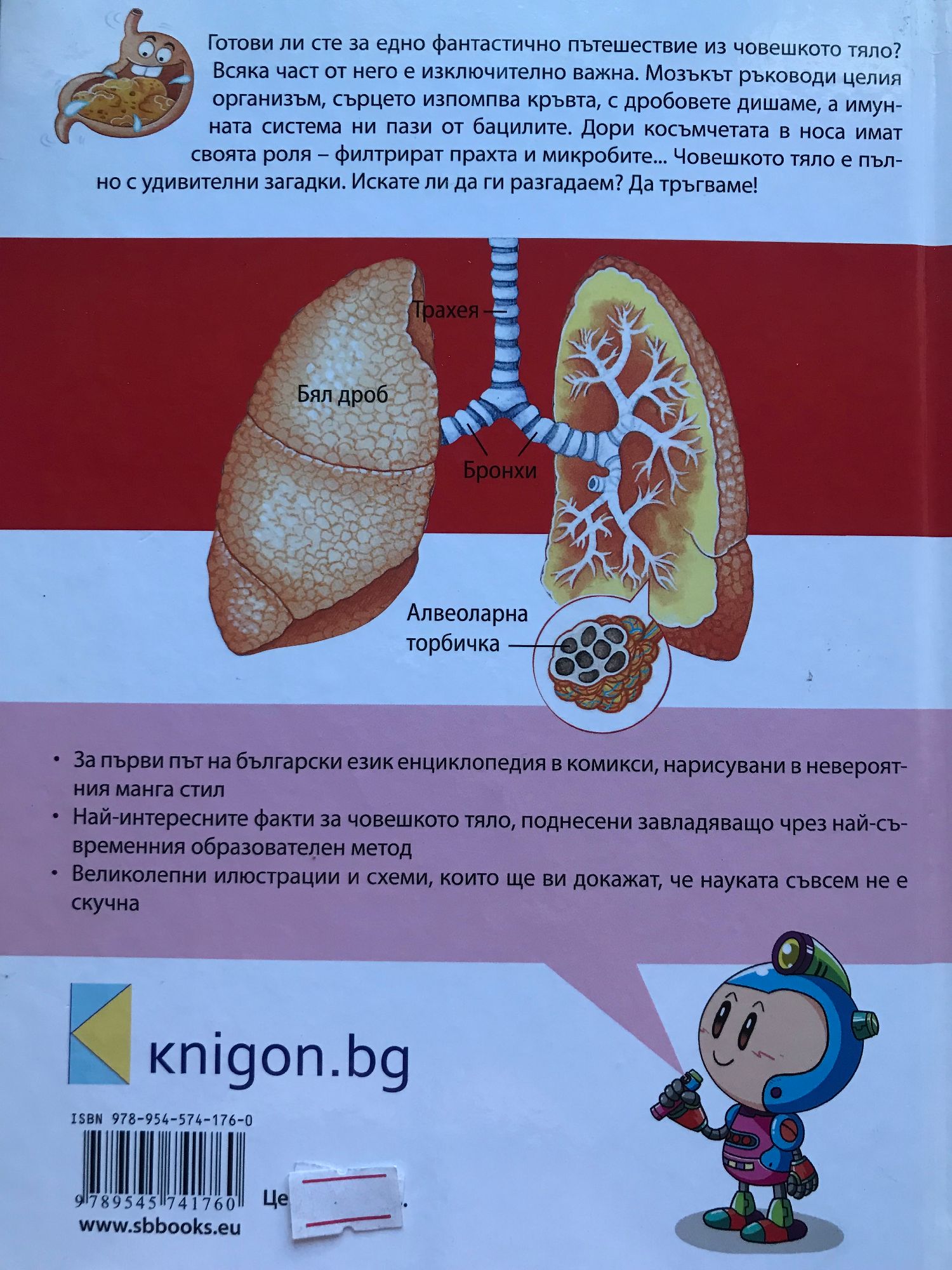 За първи път на български език енциклопедия в комикси, нарисувани в невероятния манга стил Най-интересните факти за човешкото тяло, поднесени завладяващо чрез най-съвременния образователен метод Великолепни илюстрации и схеми, които ще ви докажат, че науката съвсем не е скучна.