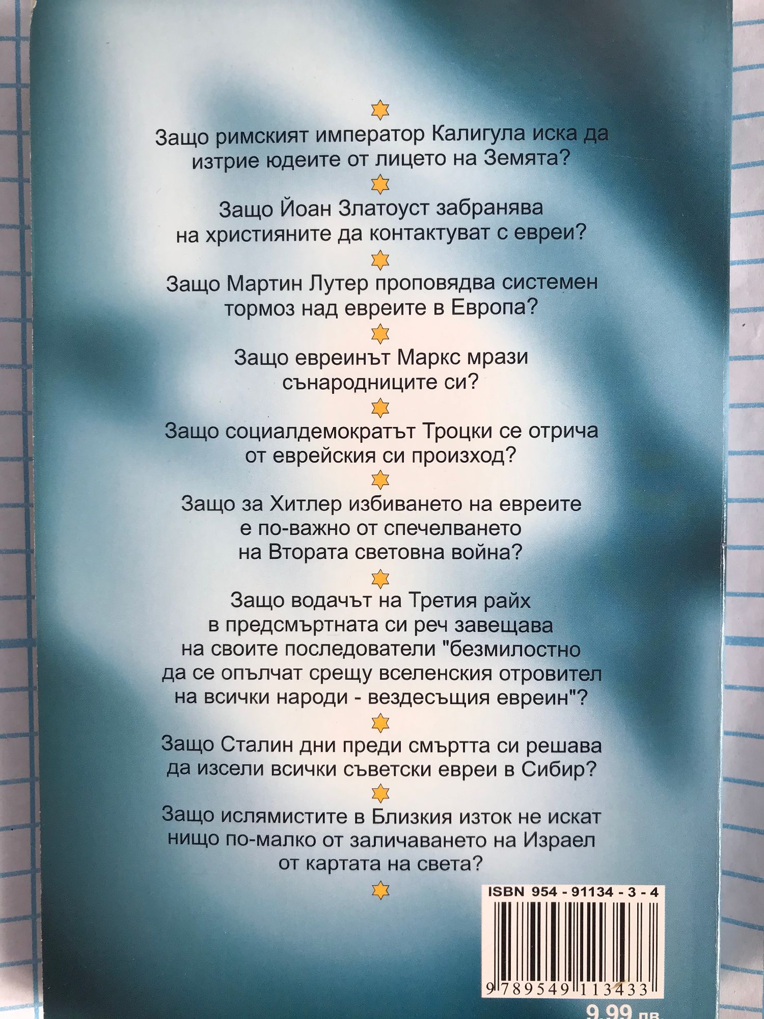 * Защо римският император Калигула иска да изтрие юдеите от лицето на Земята? * Защо Йоан Златоуст забранява на християните да контактуват с евреи? * Защо Мартин Лутер проповядва системен тормоз над евреите в Европа? * Защо за Хитлер избиването на евреите е по-важно от спечелването на Втората световна война? * Защо Сталин преди смъртта си решава да изсели всички съветски евреи в Сибир? Отговорът на тези и много други въпроси ще намерите в тази книга.