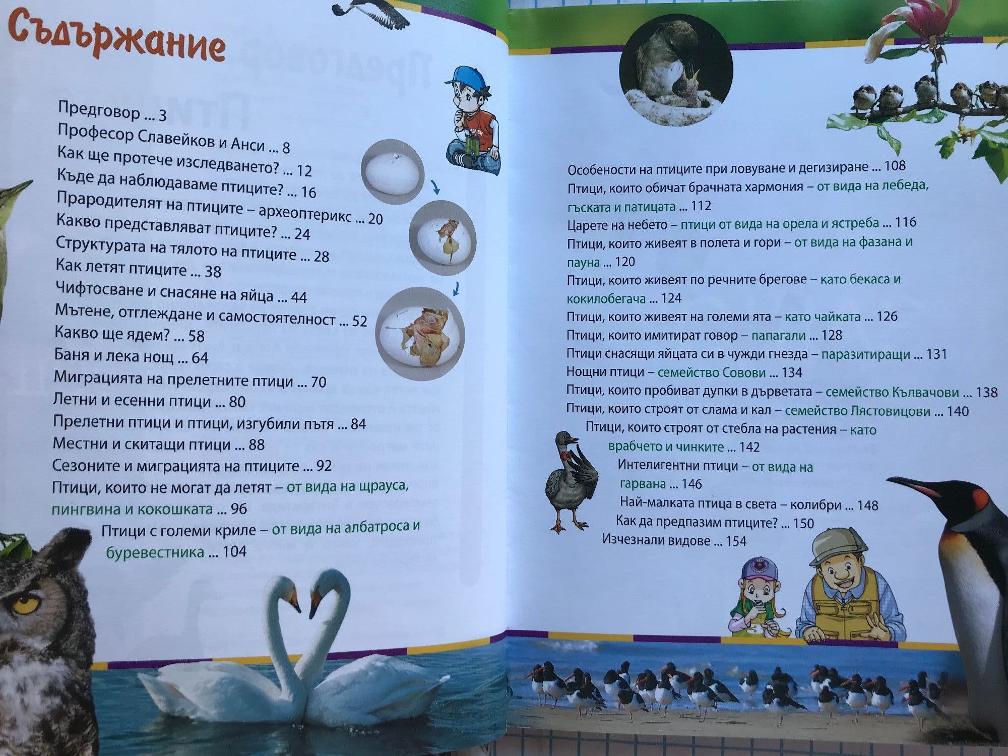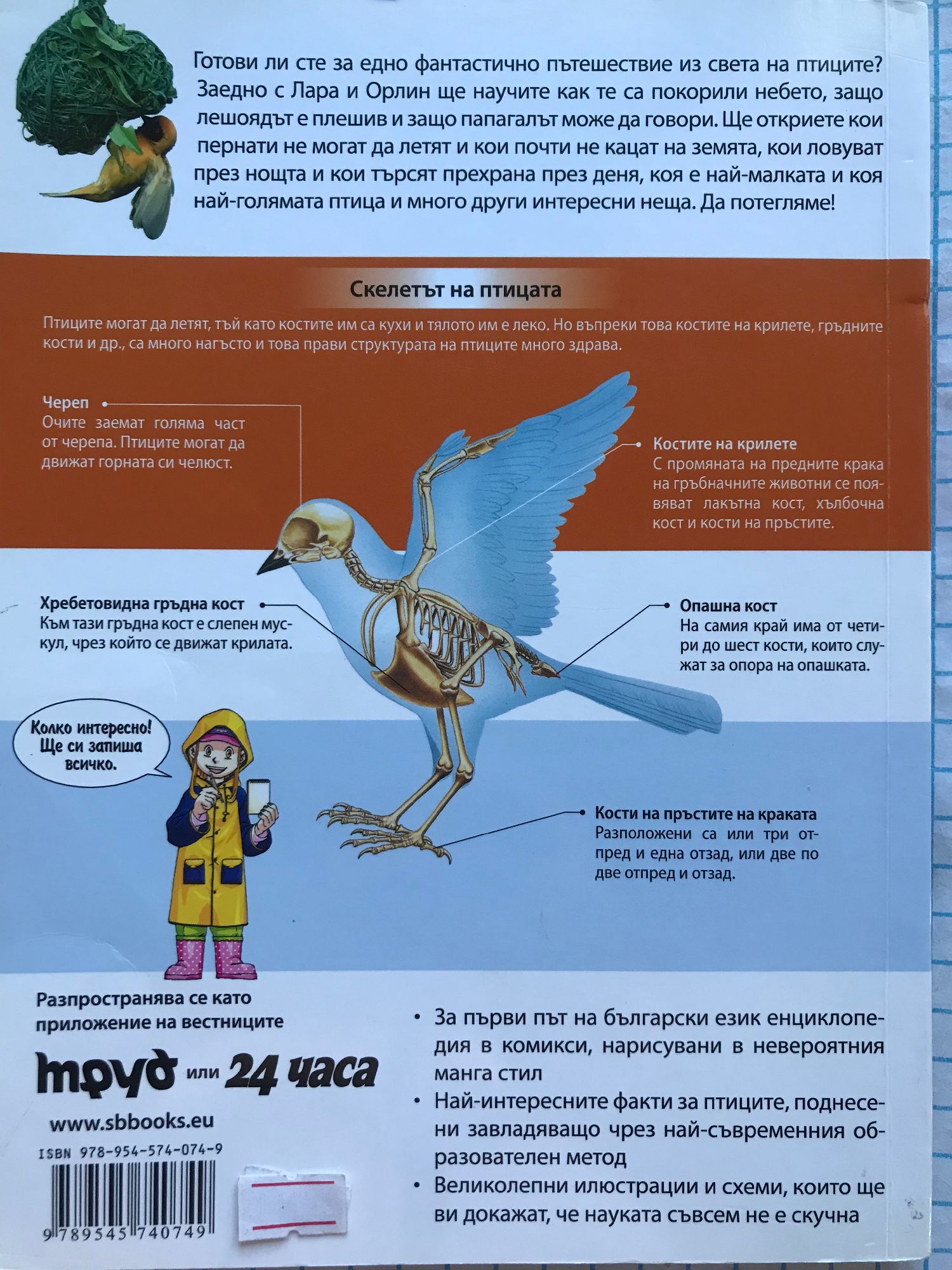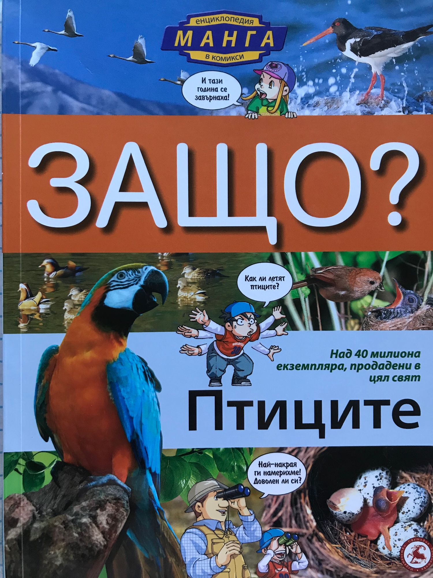Готови ли сте за едно фантастично пътешествие из света на птиците? Заедно с Лара и Орлин ще научите как те са покорили небето, защо лешоядът е плешив и защо папагалът може да говори. Ще откриете кои пернати не могат да летят и кои почти не кацат на земята, кои ловуват през нощта и кои търсят прехрана през деня, коя е най-малката и коя най-голямата птица и много други интересни неща. За първи път на български език енциклопедия в комикси, нарисувани в невероятния манга стил. Най-интересните факти за птиците, поднесени завладяващо чрез най-съвременния образователен метод. Великолепни илюстрации и схеми, които ще ви докажат, че науката съвсем не е скучна.