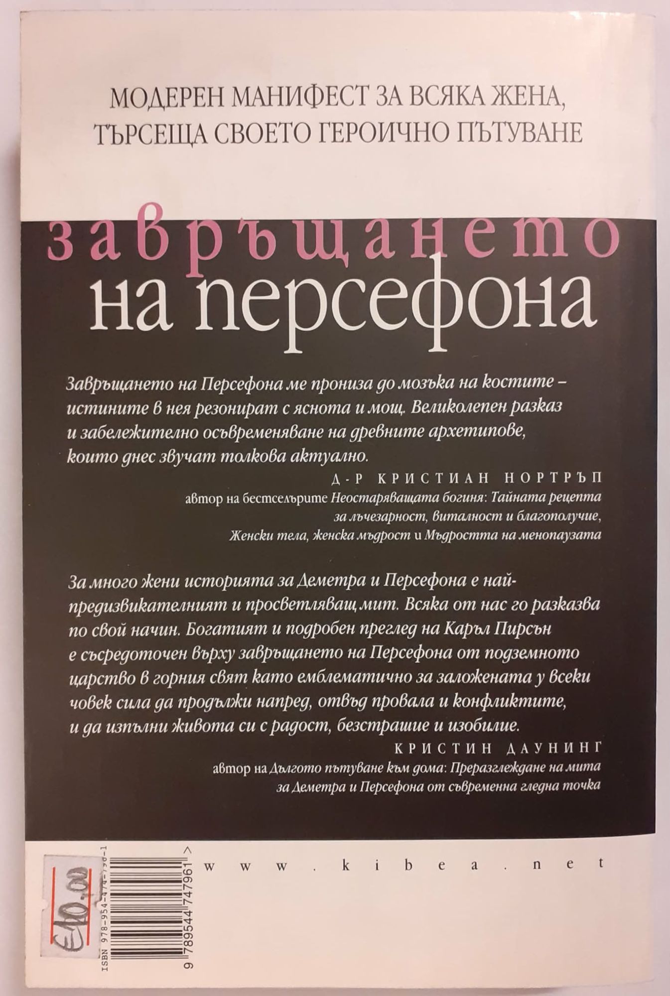 Завръщането на Персефона е проникновен модерен манифест, насочен към героинята у всяка жена, представяш мощни стратегии за съграждането на по-щастлив и по-пълноценен живот, почерпени от археmunoвeme в старогръцkumе митове за Деметра и Персефона. Героят в теб - станалата вече класическа книга, публикувана в български превод от ИК „Кибеа", на прочутата изследователка на археmunовете и дълбинната психология Каръл Пирсън помогна на стотици хиляди хора да обогатят живота cu, kаmо им nokaзa kak да черпят от мощта на археmunовеmе. Но съвременната епоха на професионално и семейно напрежение, постоянна комуникация и подновен geбam kak да “имаме всичко" изправя съвременните жени пред нови, непознати предизвukameлcтва. Сега Пирсън се оnupa на фундаменталното си разбиране за непреходната сила на мита kamo kаmализатор на вътрешната трансформация и поднася на читателя своята нова визия kak да посрещаме днешните предизвикателства и да се издигнем над тях. Дава ни напътствия kak да предприемем смело пътуване на себеоткривателство, kak да събудим и да впрегнем археmunовете на Деметра и Персефона - също и на Зевс и Дионис — за да ни служат в живота, каmо ни вдъхва силата ga omkpuваме неподозираните възможности, с kоumo сме заобиколени. Авторkаmа съчетава митове, мъдрост и прецизни психологически прозрения, приложени към живота на съвременния човек за постигането на мощно трансформиращо въздействие. Притежаваме силата да променяме себе си и своя свят,