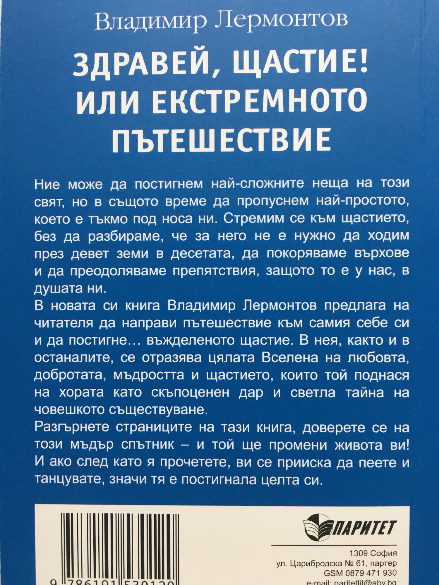 В новата си книга Владимир Лермонтов предлага на читателя да направи пътешествие към самия себе си и да постигне... въжделеното щастие. В нея, както и в останалите, се отразява цялата Вселена на любовта, добротата, мъдростта и щастието, които той поднася на хората като скъпоценен дар и светла тайна на човешкото съществуване. Разгърнете страниците на тази книга, доверете се на този мъдър спътник - и той ще промени живота ви! И ако след като я прочетете, ви се прииска да пеете и да танцувате, значи тя е постигнала целта си.