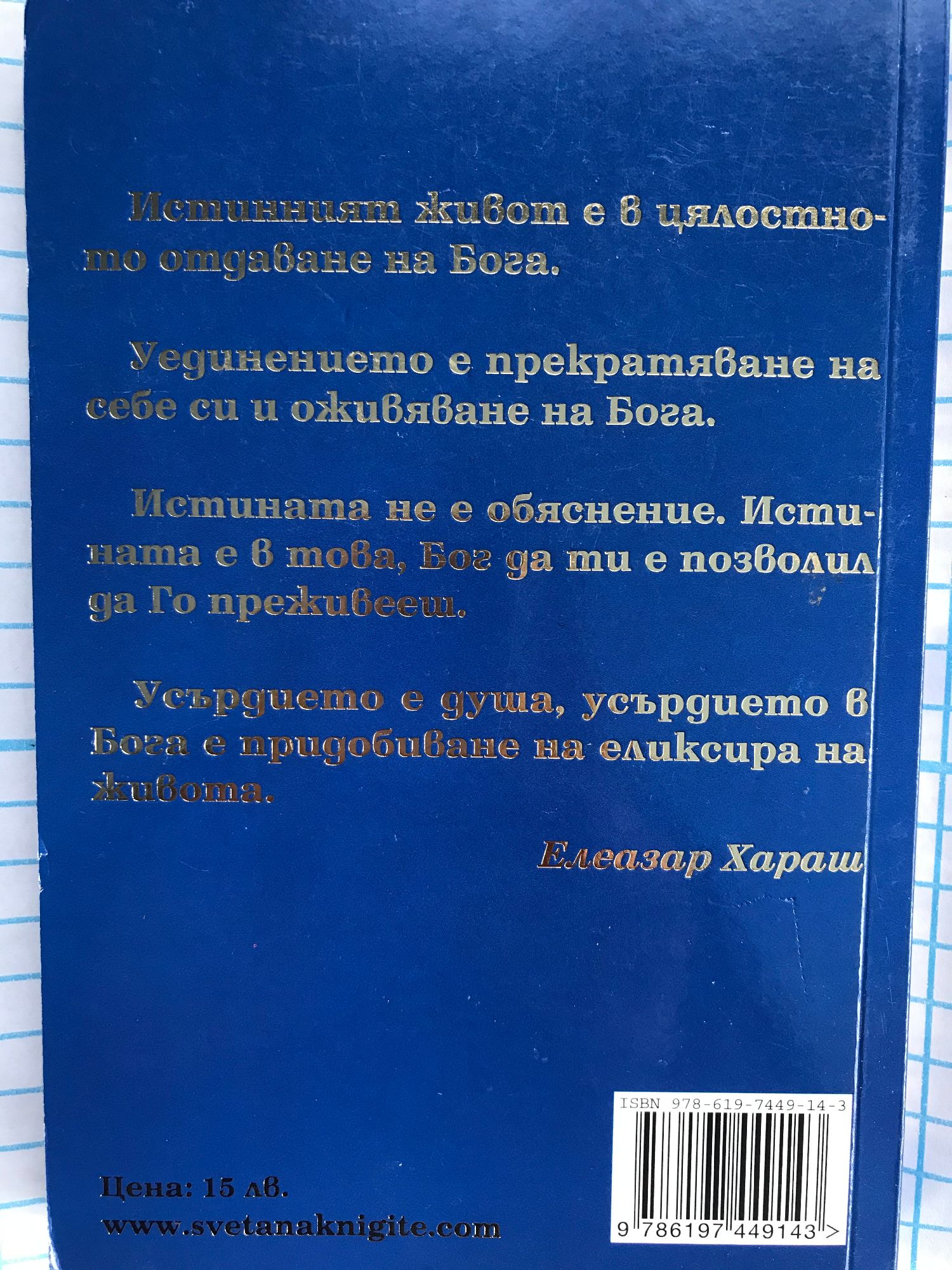 Истинният живот е в цялостното отдаване на Бога. Уединението е прекратяване на себе си и оживяване на Бога. Истината не е обяснение. Истината е в това, Бог да ти е позволил да Го преживееш. Усърдието е душа, усърдието в Бога е придобиване на еликсира на живота. Елеазар Хараш