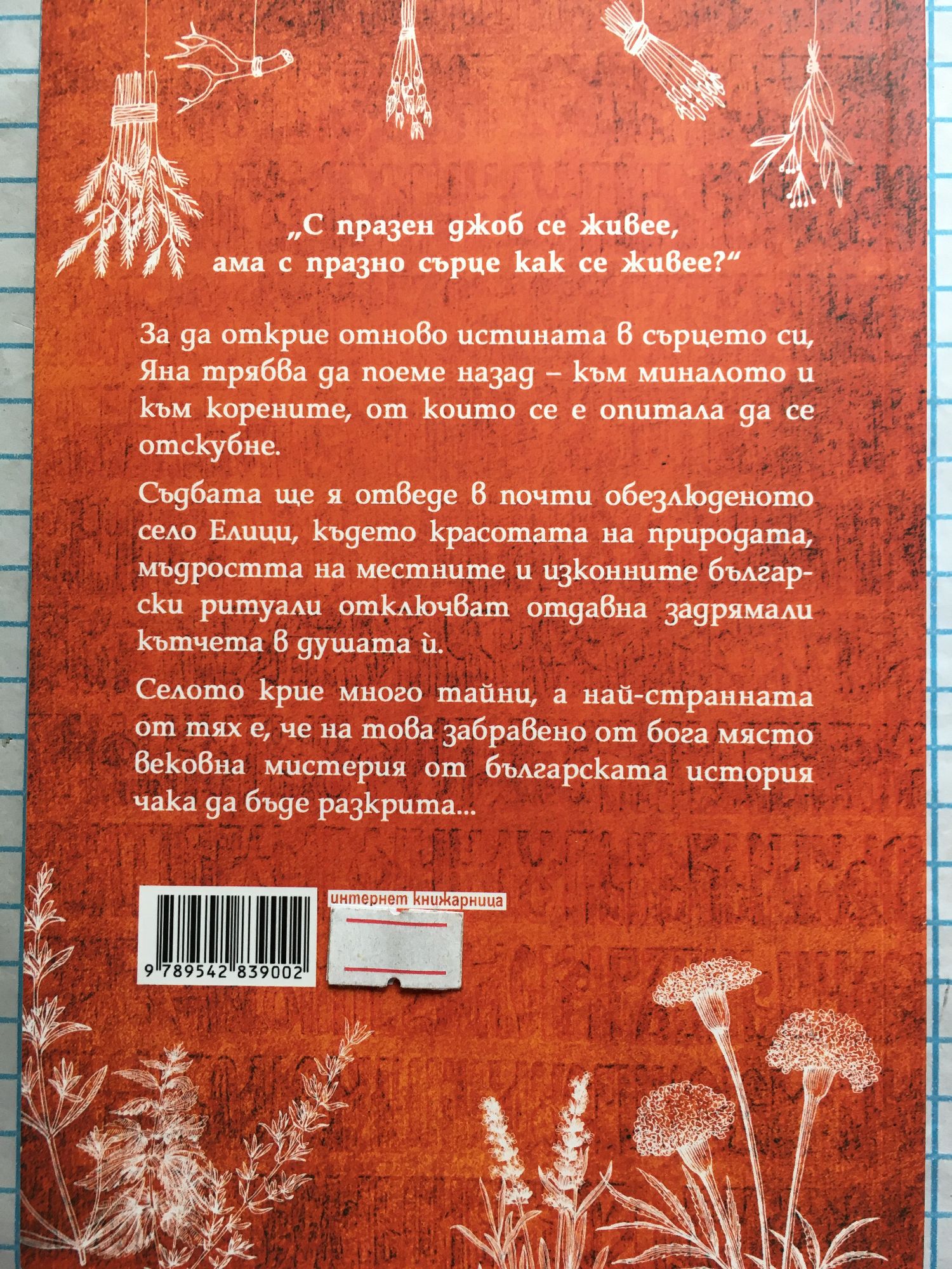 "C празен джоб се живее, ама с празно сърце как се живее?" За да открие отново истината в сърцето си, Яна трябва да поеме назад - към миналото и към корените, от които се е опитала да се отскубне. Съдбата ще я отведе в почти обезлюденото село Елици, където красотата на природата, мъдростта на местните и изконните български ритуали отключват отдавна задрямали кътчета в душата ѝ. Селото крие много тайни, а най-странната от тях е, че на това забравено от бога място вековна мистерия от българската история чака да бъде разкрита...