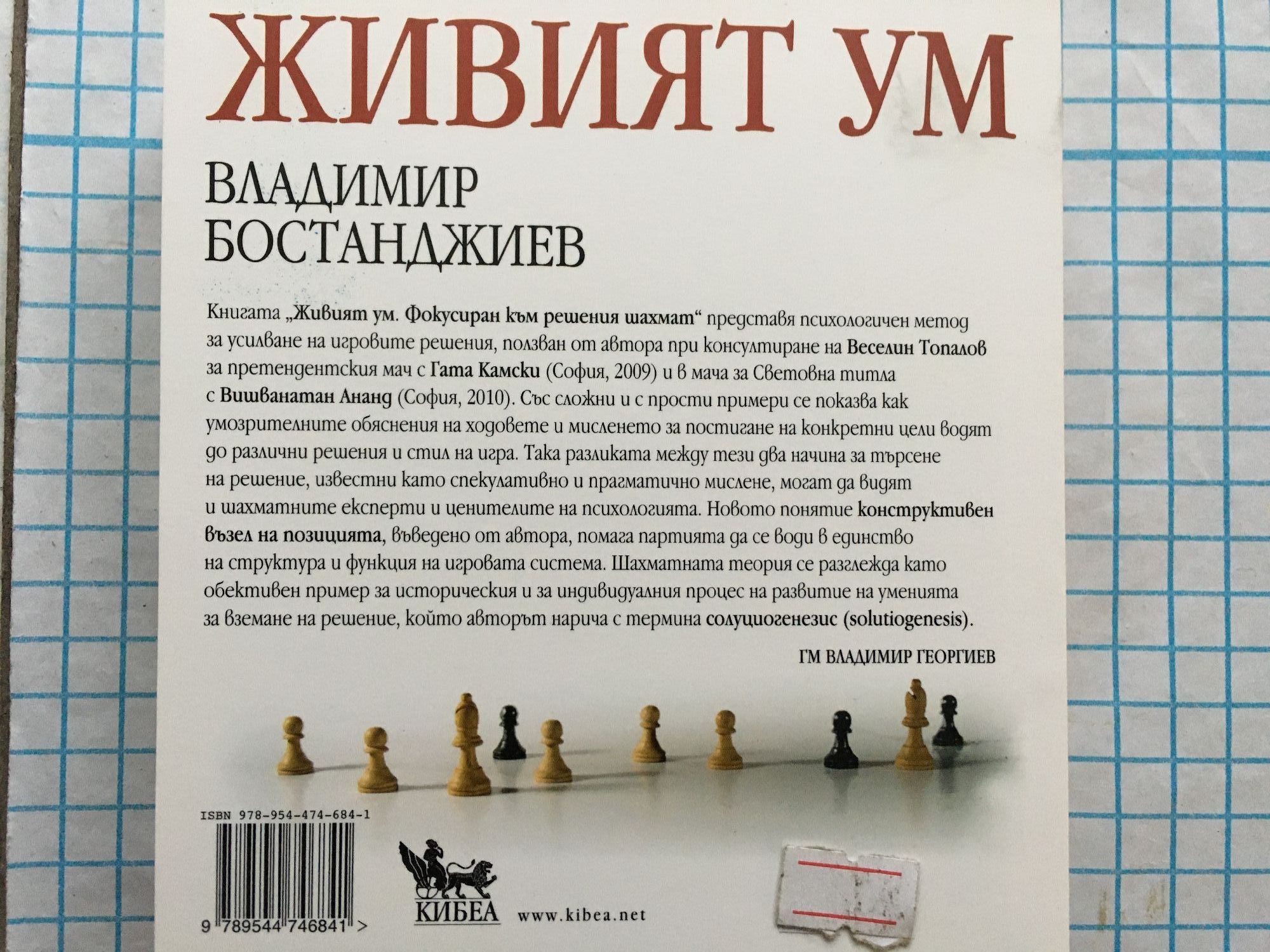 Книгата „Живият ум. Фокусиран към решения шахмат“ описва психологичен метод за усилване на игровите решения с помощта на вътрешната реч, наред с таланта за визуализация. Авторът, психиатър-психотерапевт, прилага метода при консултирането на Веселин Топалов за претендентския мач с Гата Камски (София, 2009) и за Световната титла с Вишванатан Ананд (София, 2010) и анализира психологията на шахматната борба. За пръв път се изследват примери от литературата, в които гениални шахматисти споделят вътрешната си реч при търсене на решение. Доказва се, че информацията се обработва в аудио-визуален кръг: играчът визуализира желаната позиция като цел, търси ходовете до нея като средство и формулира решението словесно като връзка между целта и средството. Грешките на стила възникват, когато ходовете се обясняват умозрително без оглед на конкретна цел. Разликата между умозрителните обяснения и прагматичното мислене авторът формулира като принцип на дихотомия между решенията и обясненията и я показва в сложни и в прости примери, достъпни за ценителите на психологията с начални знания за играта. Според принципа на дихотомия шахматната теория и умения се развиват при преходи от спекулативно към прагматично мислене, следвайки исторически процес на зараждане на нови системи за вземане на решения, наричан от автора с термина солуциогенезис (solutiogenesis: от лат. solve – решавам и от гр. genesis – раждане). Доказва се, че съвременната партия се развива от сложни към прости равновесни позиции при смяна на конструктивния възел на позицията. Това ново понятие улеснява воденето на партията в единство на структура и функция на игровата система.
