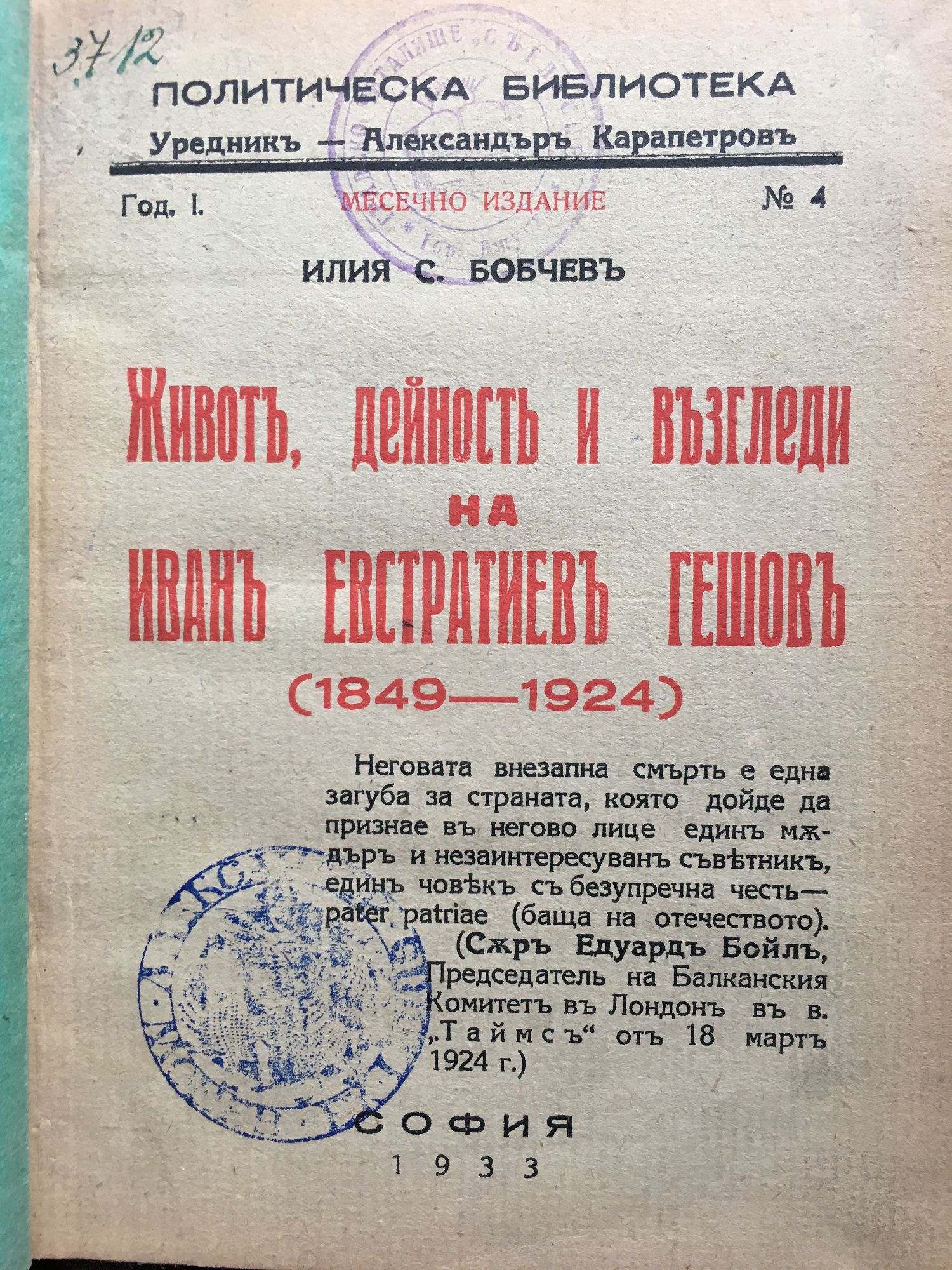 Животъ, дейность и възгледи на Иванъ Евстатиевъ Гешовъ / Живот дейност и възгледи на Иван Евстатиев Гешов