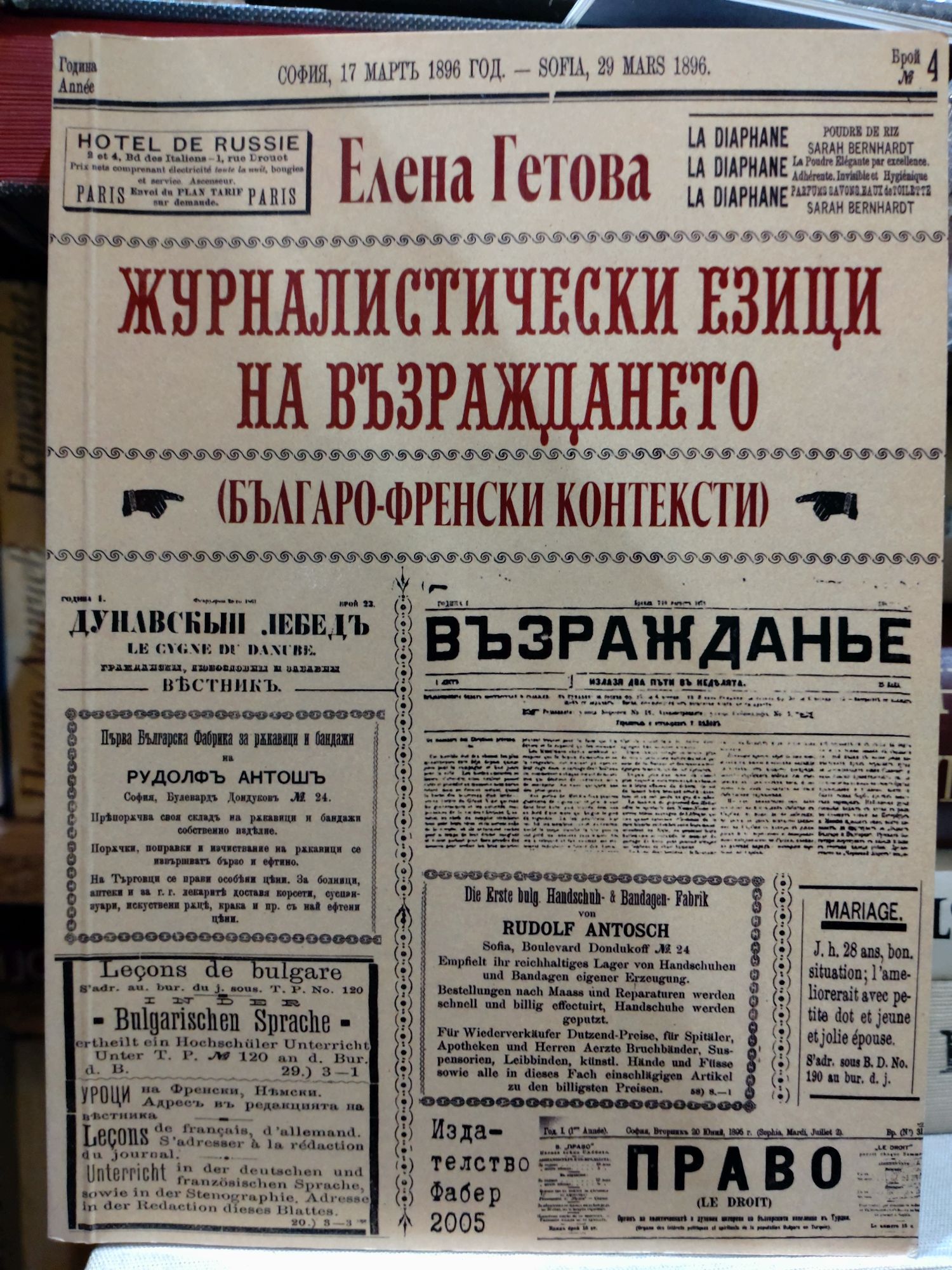 "Журналистически езици на Възраждането" изследва мястото и облика на българо-френските издания във възрожденската ни култура. В процеса на развитието си възрожденската преса следва европейските модели в налагането на вестника като културна форма. В многоетническите империи от ХІХ в. е разпространено използването на два (или повече) езика в журналистическото общуване. Така се осъществява диалог вътре в националните общности, а и с чуждата аудитория, защото френският е език на европейската дипломация. Наблюденията над този специфичен дял от българската периодика открояват идеологическите основания на превеждането. Дефинира се понятието журналистически превод като специфична културна стратегия в търсене на езиците на българската публичност и идентичност. "От Фотинов, през Раковски до Т. Пеев авторката съумява да открои характерното за работата им с два езика, да поднесе своето виждане за своеобразната приемственост между тях в променящото се българско възрожденско общество. Различните подходи на всеки от журналистите-преводачи и стратези на българското национално съзряване са показани в пълнота именно чрез усилията за написване на българската проблематика за европейския потребител." Ст. н. с. д-р Румяна Станчева "Съдбата на българските двуезични издания свидетелства за маргиналността ни като за обстоятелство, срещу което борбата винаги започва отначало. Продължение на изведените в изследването постановки може да бъде погледът върху самоутвърдителните усилия на българското слово и след края на XIX век. Вазов, 3. Стоянов, Ал. Константинов ще имат своите недоумения и възмущения от това колко малко сме интересни за голяма част от външния свят." Проф. д.ф.н. Бистра Ганчева