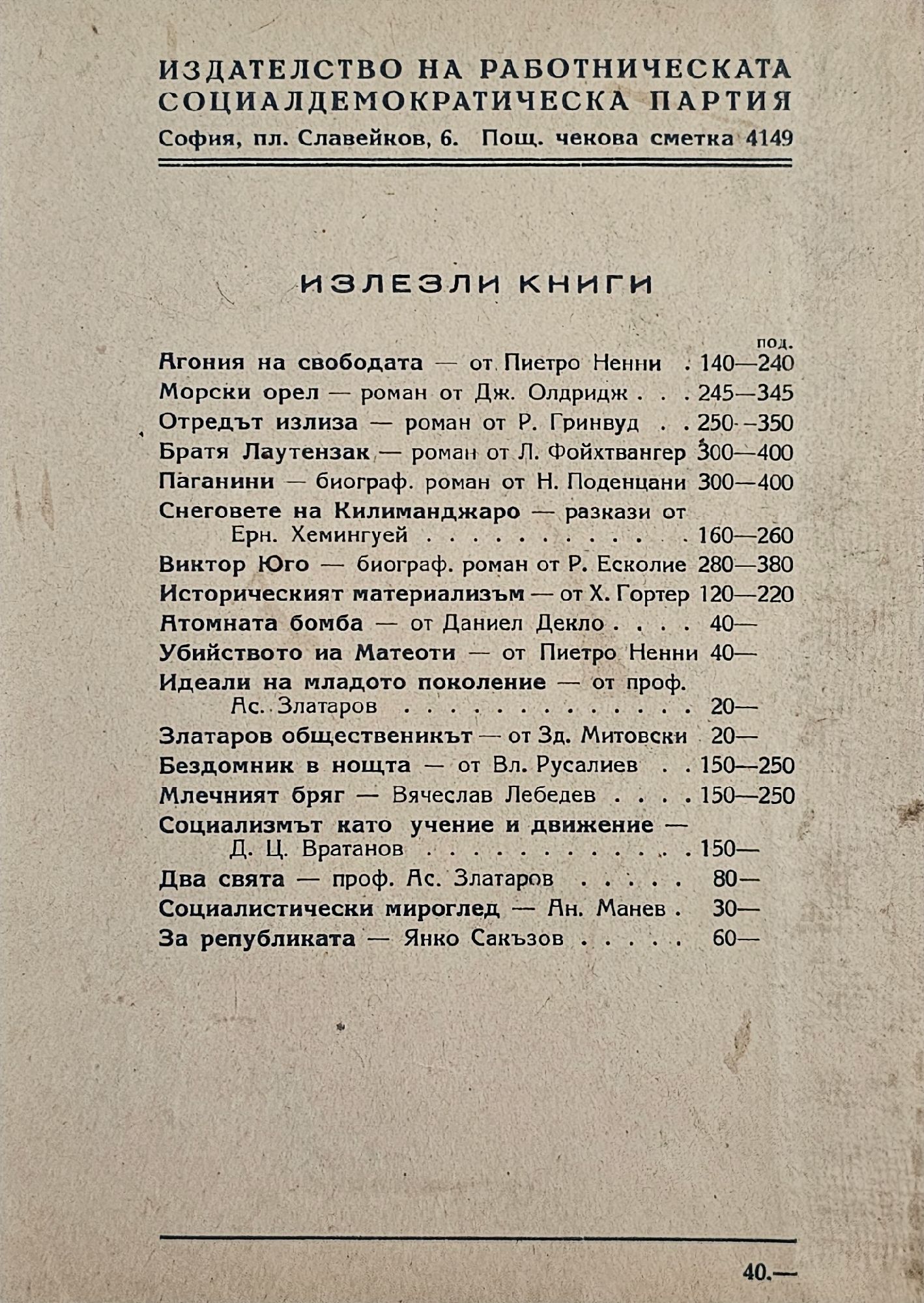 - издателство: Издателство на работническата социалдемократическа партия