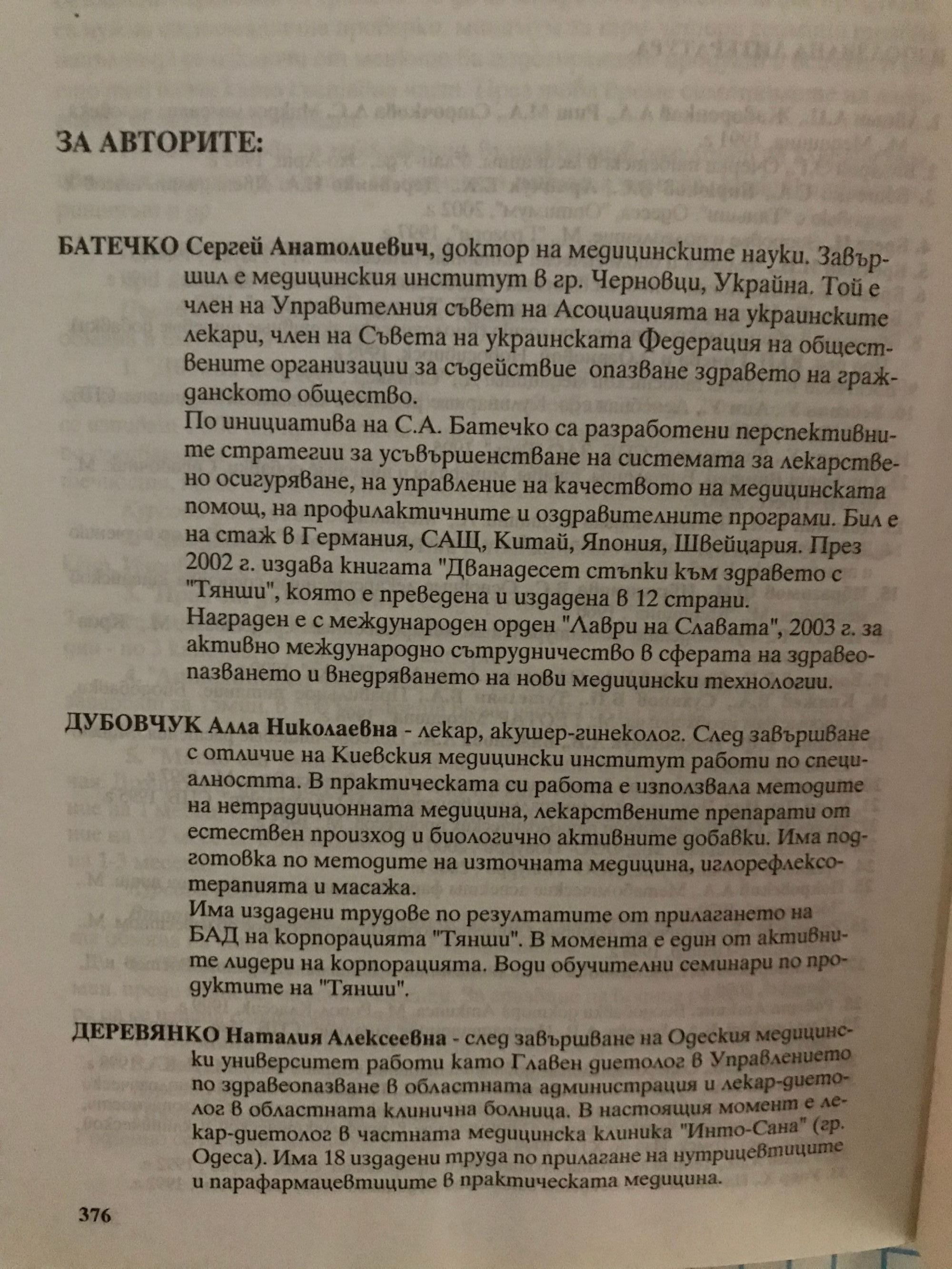 от д-р. Сергей Батечко, д-р. Алла Дубовчук, д-р. Наталия Деревянко