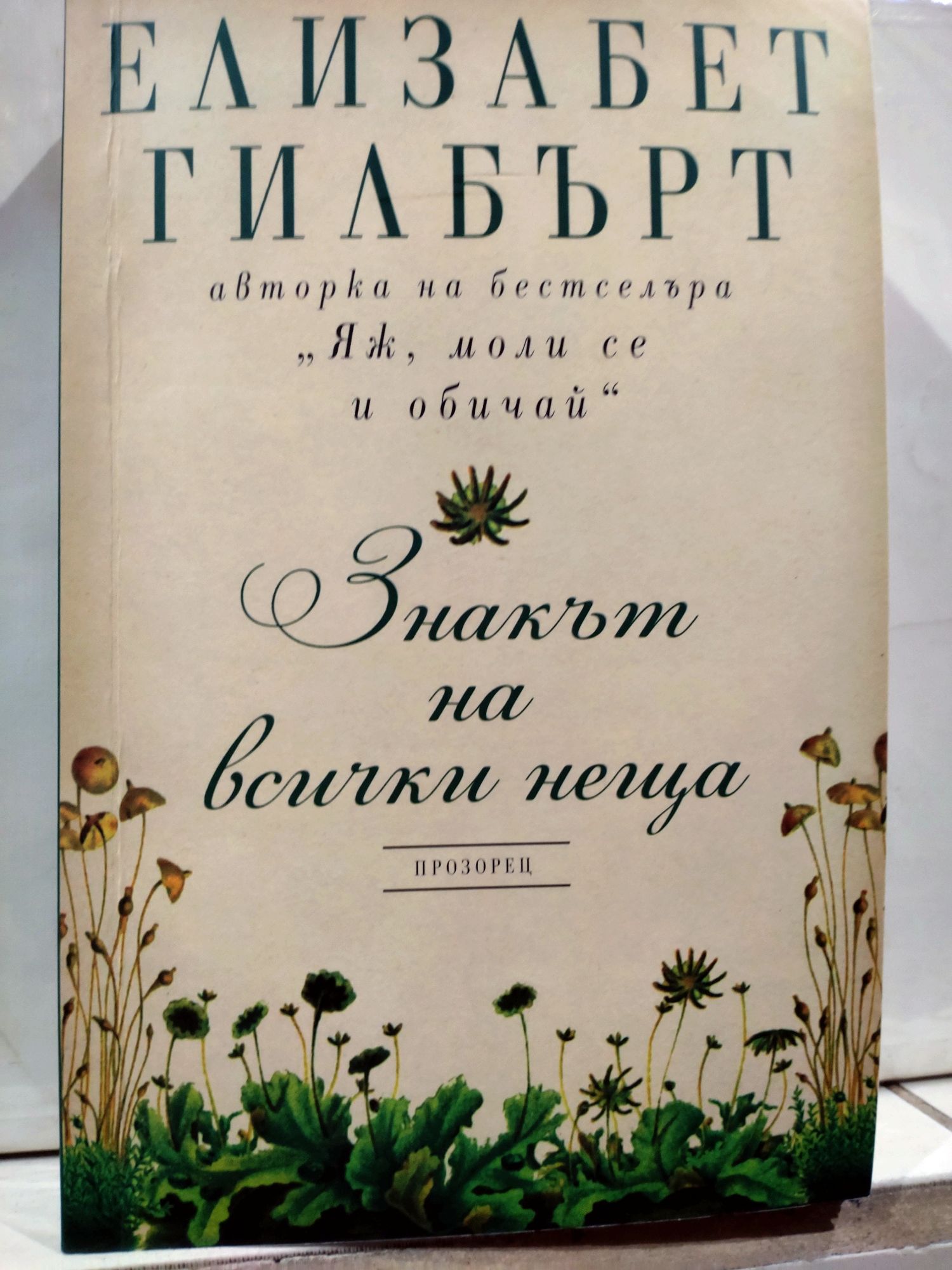 В „Знакьт на всички неща" Елизабет Гилбърт разказва една история за любов, приключения и открития. Обхващайки част от XVIII век и почти целия XIX век, романът проследява съдбата на необикновеното семейство Уитакър. Предприемчивият Хенри Уитакър е беден англичанин, който натрупва огромно състояние от търговия с хинин и се превръща в най-богатия човек във Филаделфия. Дъщеря му Алма Уитакър наследява блестящия ум на баща си и неговото състояние. Тя се превръща в забележителен ботаник, отдаден на науката. Докато изследва загадките на еволюцията, Алма се влюбва в Амброуз Пайк, който прави ненадминати илюстрации на орхидеи и я отвежда в противоположната посока - в сферата на духовното, божественото и вълшебното. Алма е човек на мисълта, а Амброуз - утопичен творец, но това, което ги обединява, е дълбоката нужда да разберат как е устроен светът и какви механизми се крият зад всички проявления на живота.